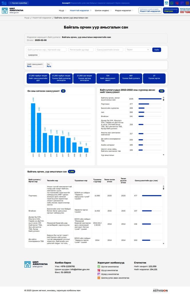 Энэ сайт нь төрийн байгууллагуудын мэдээллийг цуглуулж нэгтгэх зарчмаар хийгдсэн, эхэн үедээ яамдууд мэдээллээ нийлүүлж байсан боловч сүүлдээ эрч нь суларсан. Одоогоор энд байршсан мэдээллээс хамгийн үнэ цэнэтэй нь Богдхан уулын дархан цаазат газарт олгосон зөвшөөрлийн мэдээлэл.
